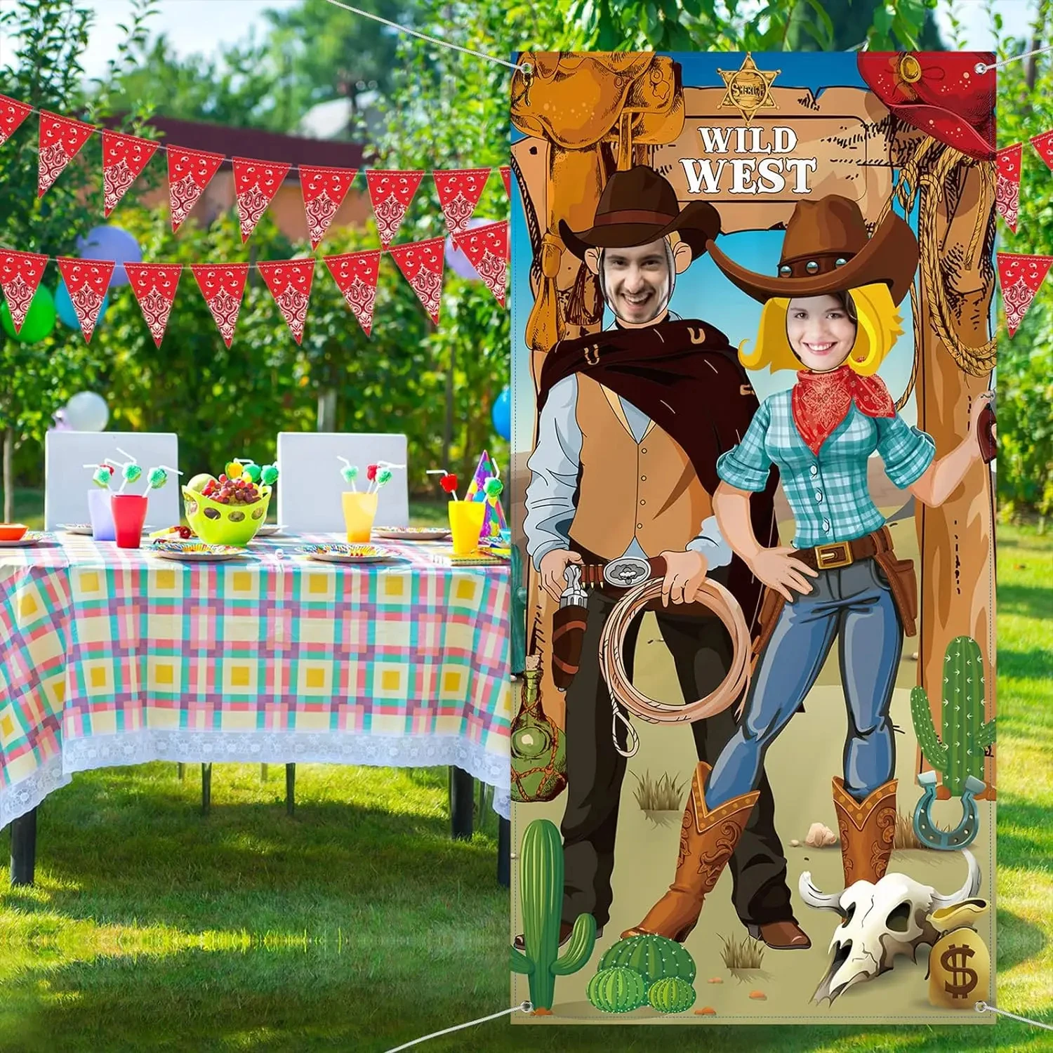 Elevate your cowboy party with our Fun Cowboy Exposed Background Fabric! Featuring a cool cowboy and cowgirl theme, this fabric is perfect for western-themed parties and adds a fun touch to your photography decorations. Measuring 0.9*1.8M, it's easy to set up and will make a great backdrop for your cowboy party.