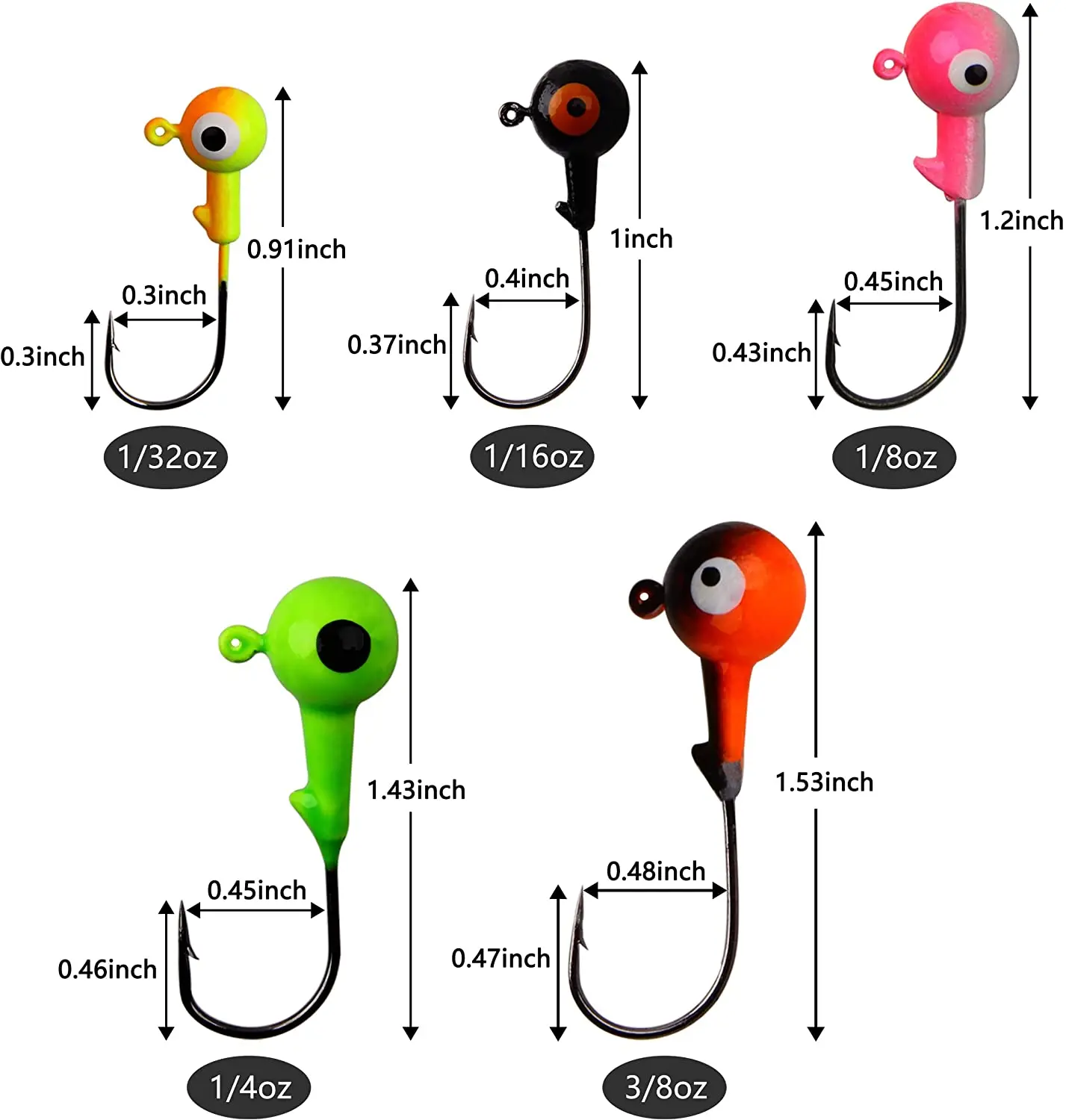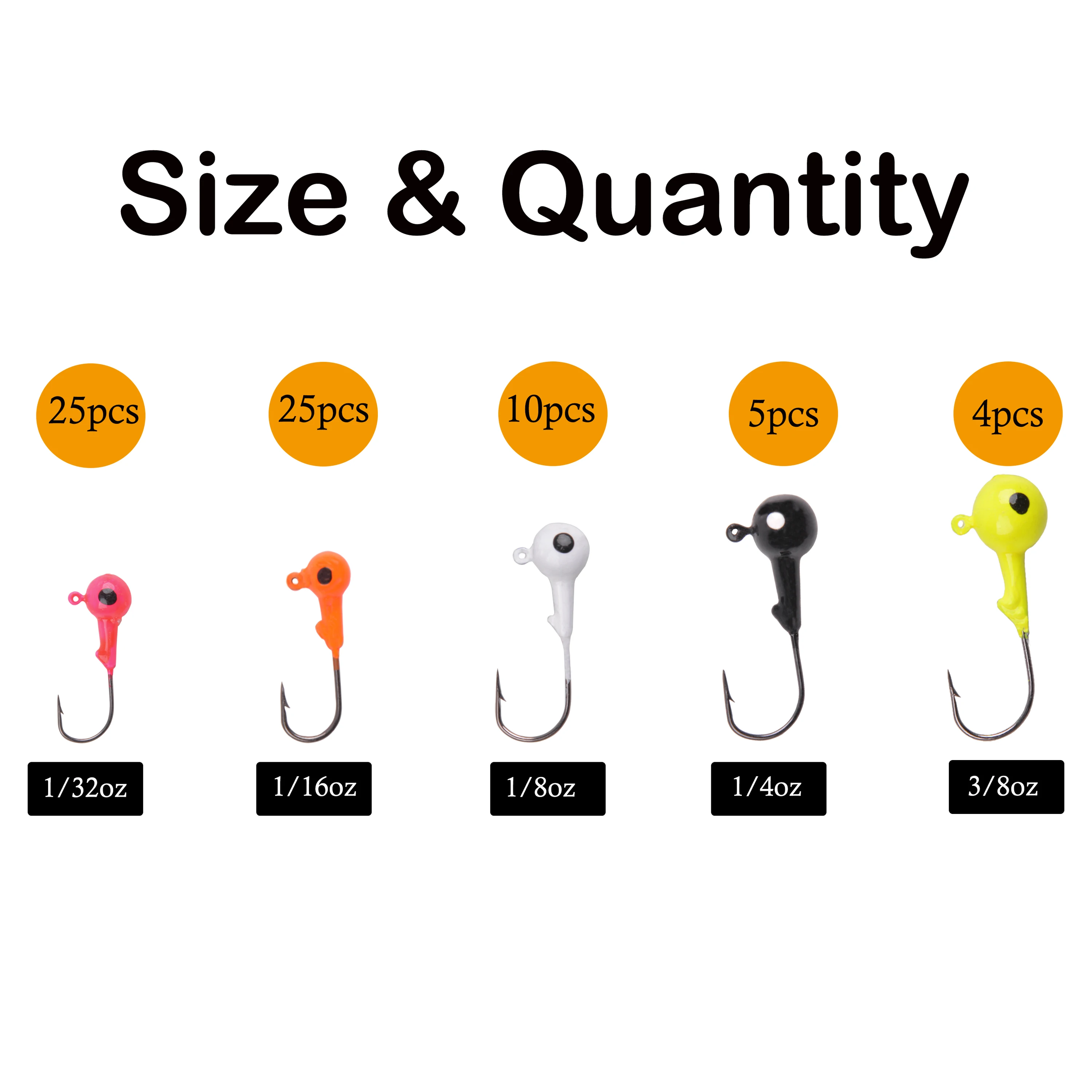 43pcs jig head hooks Included: