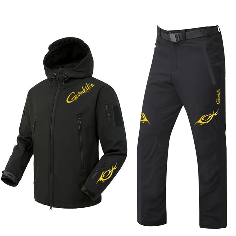 Gamakatsu Fishing Winter Fleece Warm Windproof Zipper Hooded Jacket & Fishing Pants