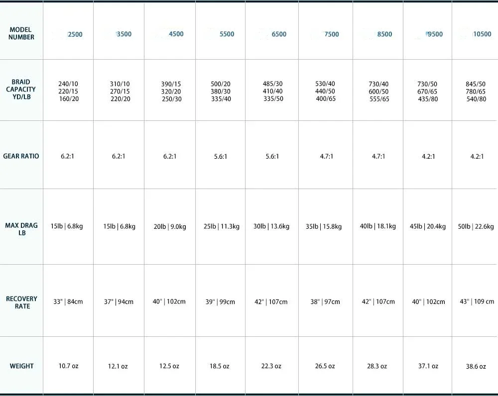·Sizes 2500-5500 have automatic bail trip