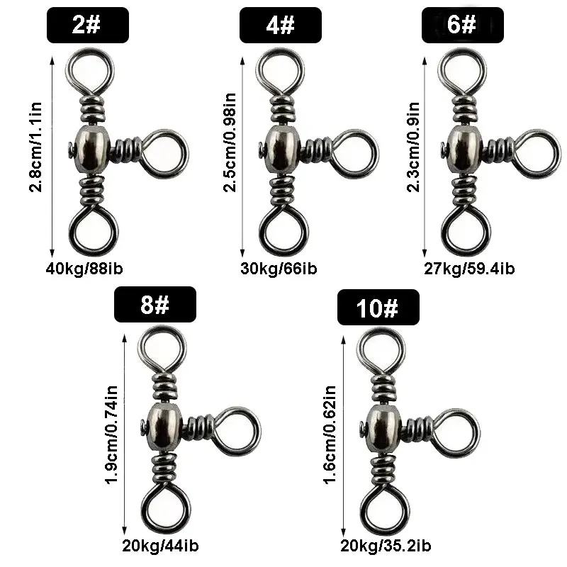 Enhance your angling experience with our 50PCS/Bag T-Swivels. Designed with precision and functionality in mind, our T-Swivels offer smooth rotation and increased durability, allowing you to spend more time fishing and less time fixing tangled lines. Experience improved efficiency and success on the water with our T-Swivels.
