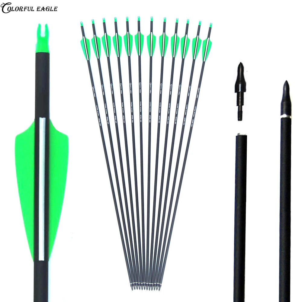 Archery Hunting Mixed Carbon Arrows 28/30/31inch Spine 500 Replaceable ArrowHead Bolts for Compound/Recurve Bow Hunting