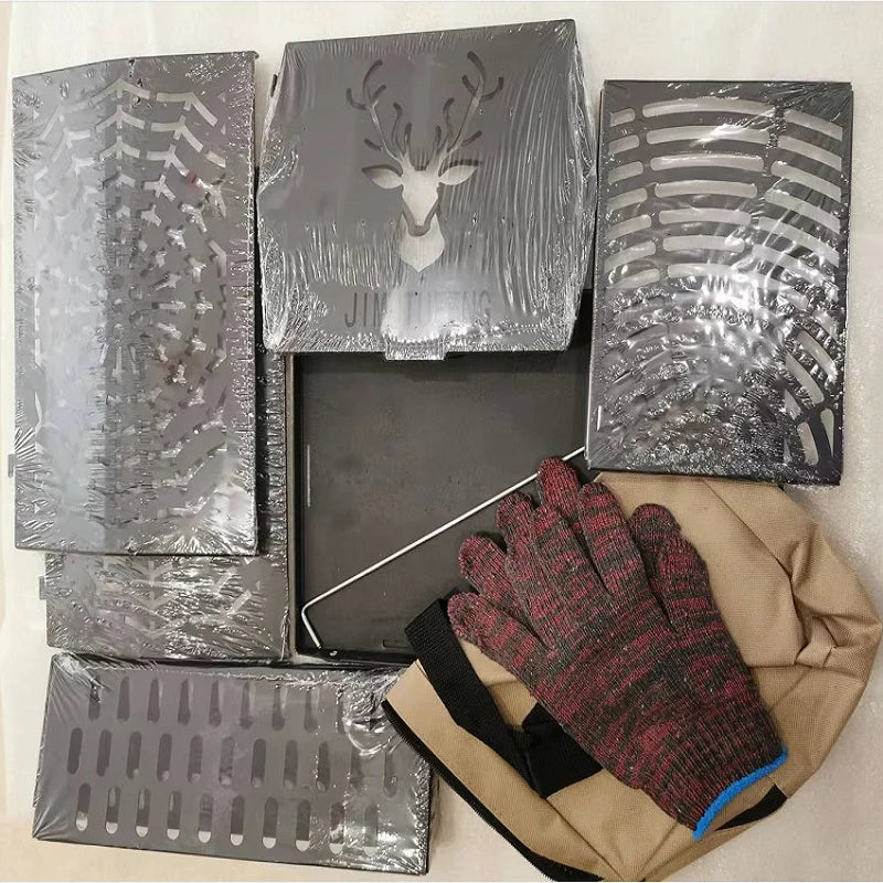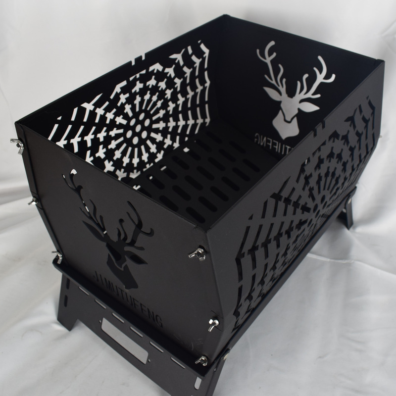 Burning Fire Table Black Plastic Spraying Movable Cold Rolled Plate Carbon Steel Deer Head Folding Stove Warm Pot Burning Pot