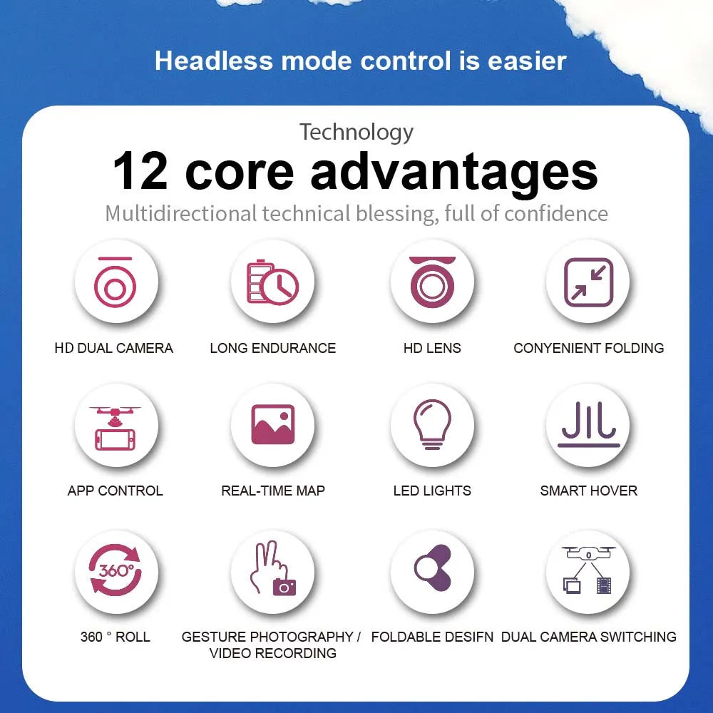 4: With camera can add functions: gesture photo, video, headless mode, emergency stop, trajectory flight, gravity sensor, automatic photo.
