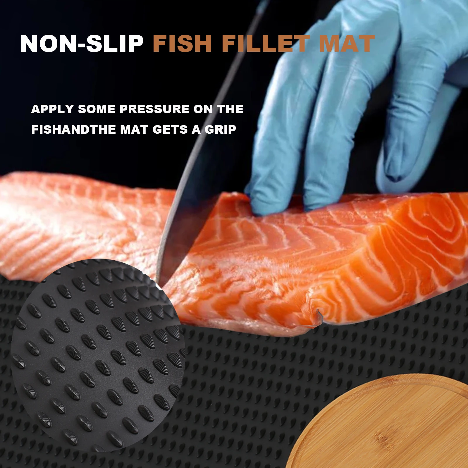 DURABLE & EASY TO CLEAN: Crafted with high-quality rubber and organic bamboo, our mat is food-safe, dishwasher-friendly, UV/chemical resistant, and odor-free. It's a perfect match for your electric fillet knife and fish fillet table.