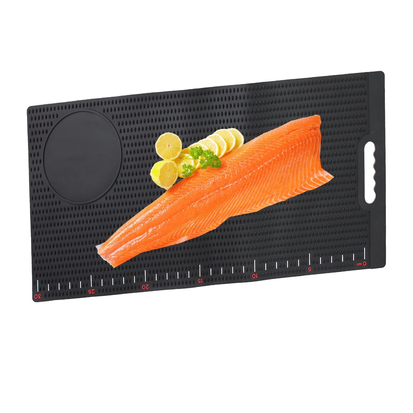 EXTRA LARGE SIZE: Ideal choice for your fish cleaning table. This mat measures 32.5 inches in length by 15.7 inches in width, making it perfect for filleting larger fish, such as Alaskan King Salmon. It's a smart upgrade for your salmon fishing gear.