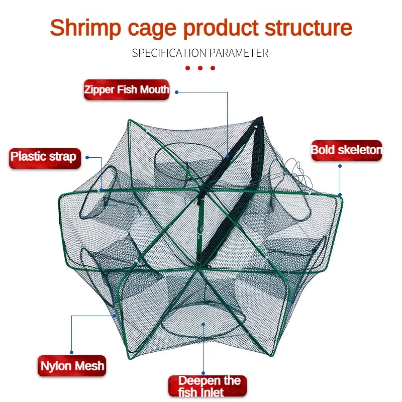 - Fishing net trap with 6 enter design, great for catching smelt, eels, crab, lobster, minnows, shrimp and crawfish.