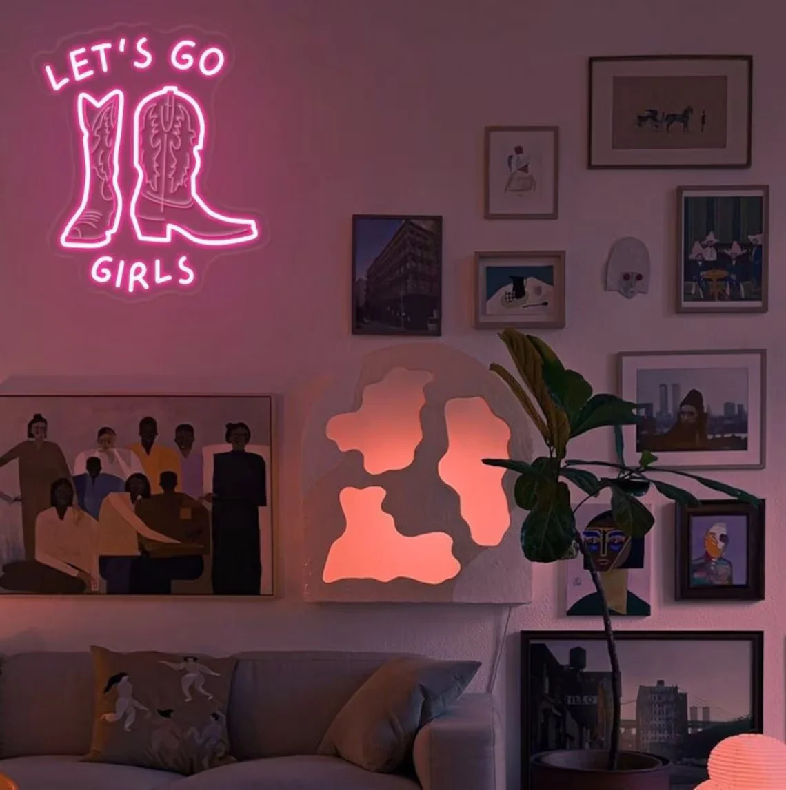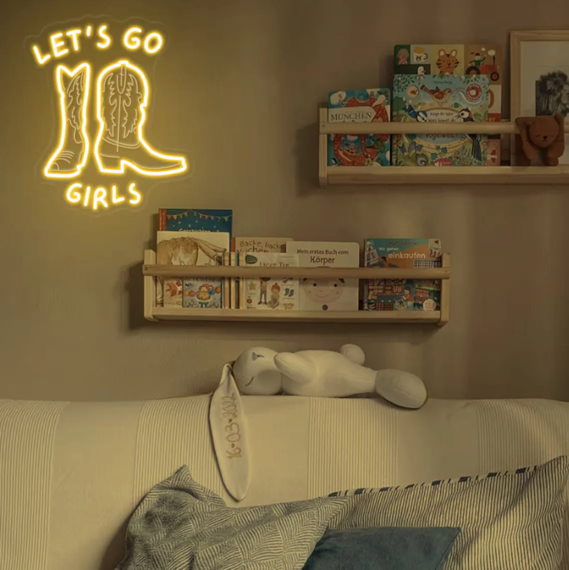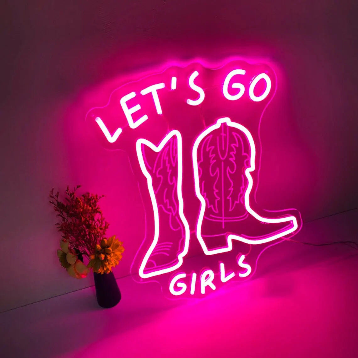 Add a touch of the Wild West to your young cowgirl's bedroom with our Let's Neon Sign. This neon wall hanging features a vibrant cowboy boot design that will brighten up any room. Perfect for a birthday gift or to add some cowboy aesthetics to your décor.