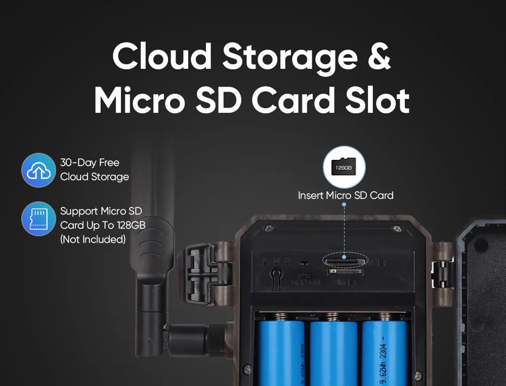 6. Support APP cloud storage and TF card storage up to 128GB (without TF card).