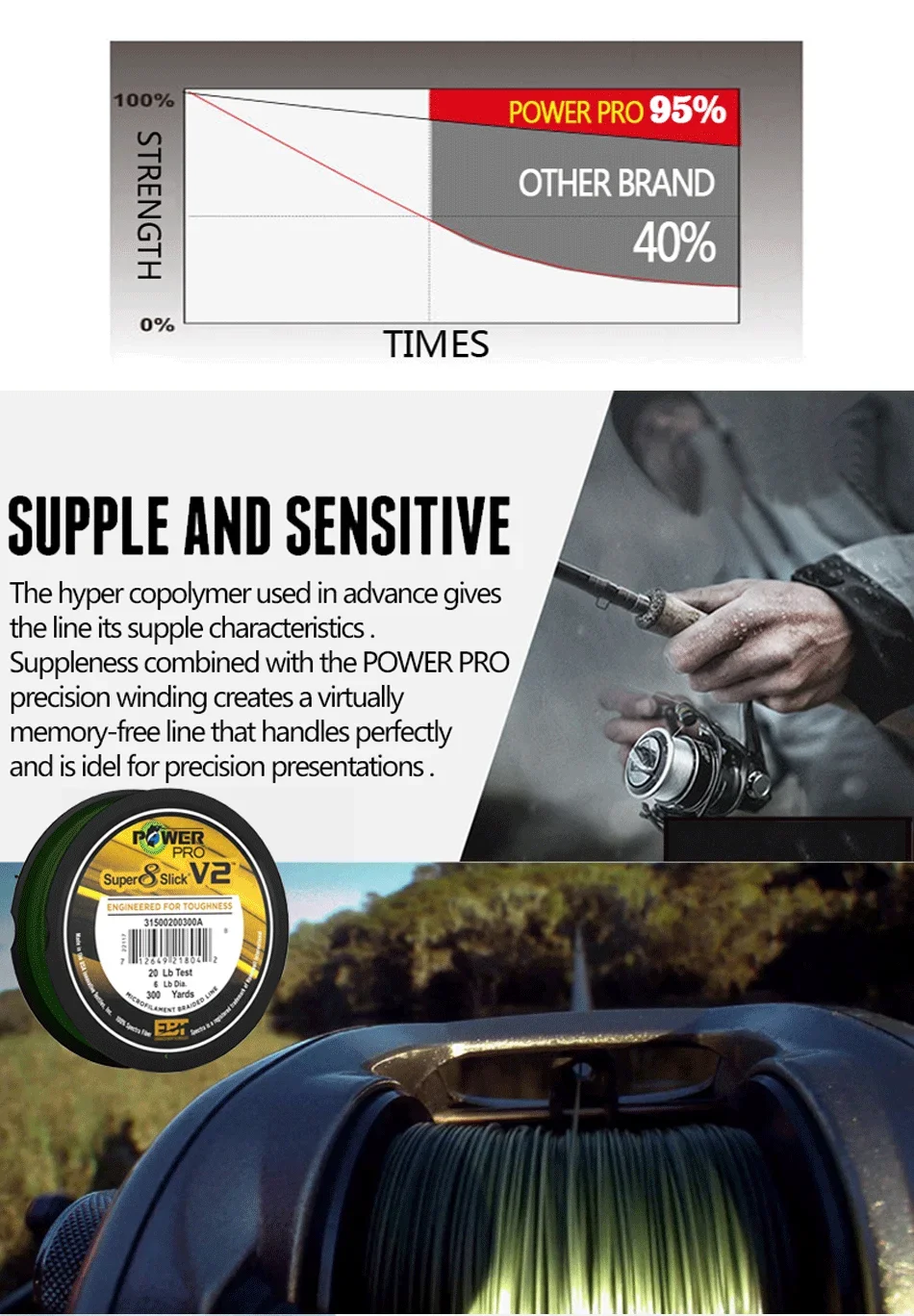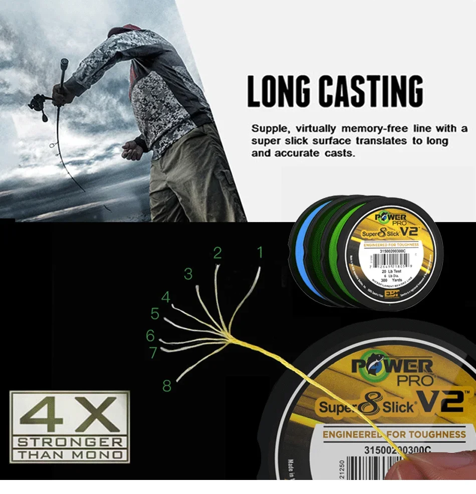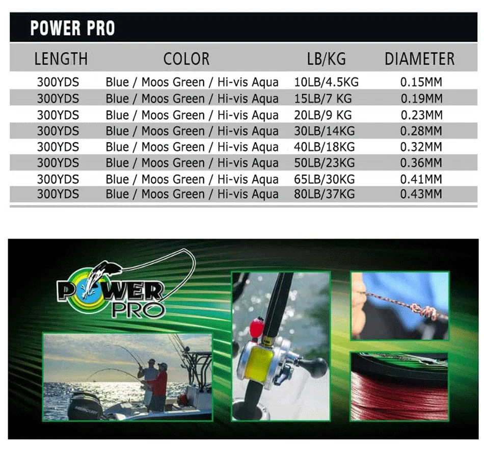 NEW POWER PRO SSV2 Braided Spectra Fishing Line - Length: 300yds, size: 10-80lb USA PE Braid Line for Sea Fishing