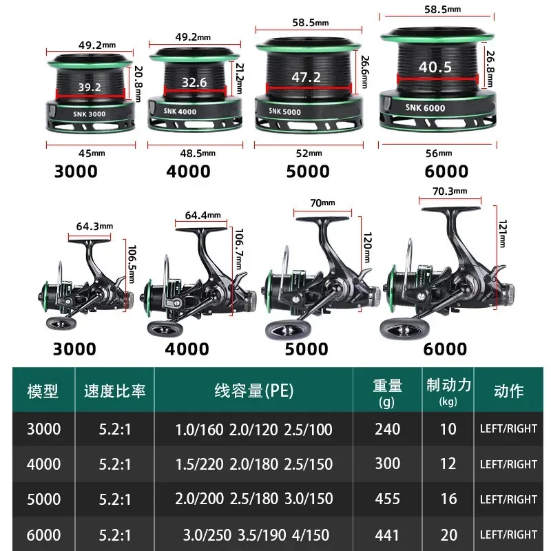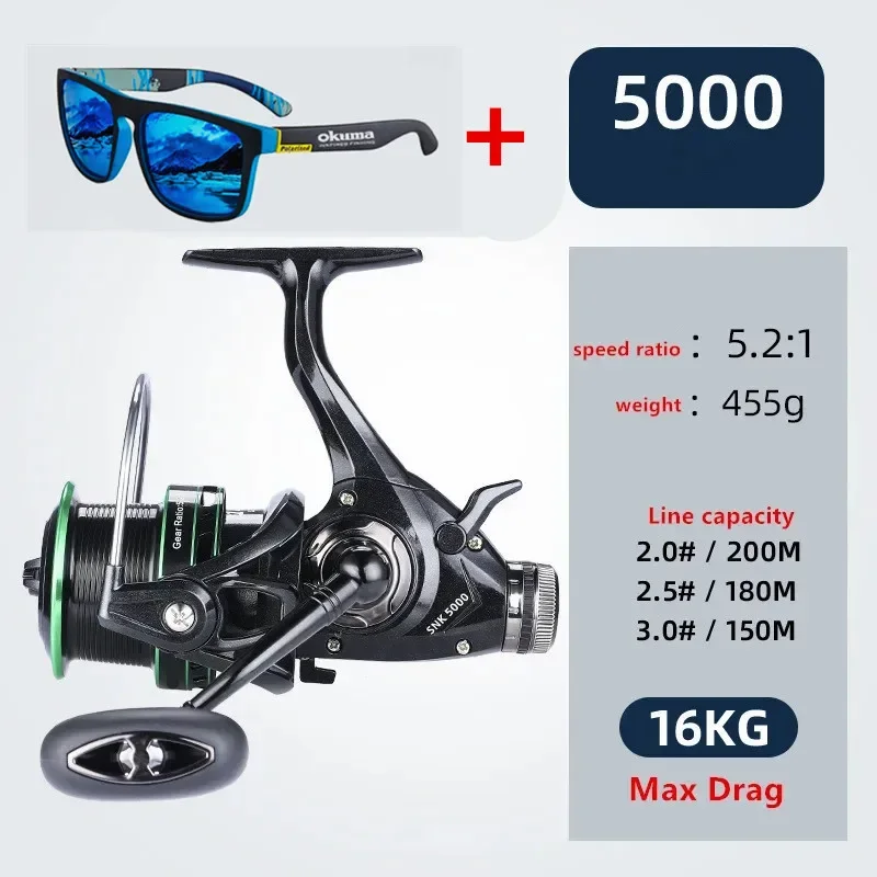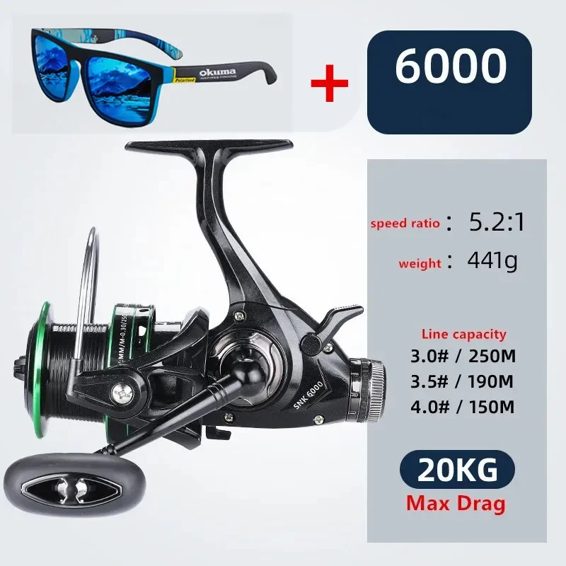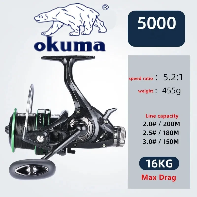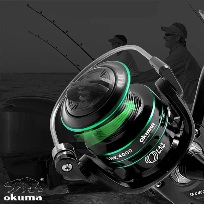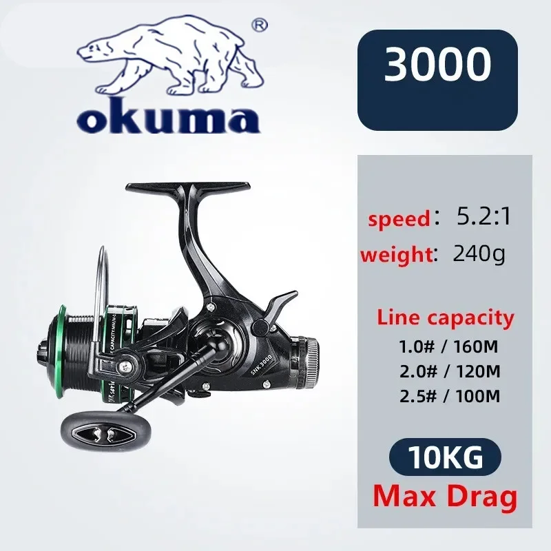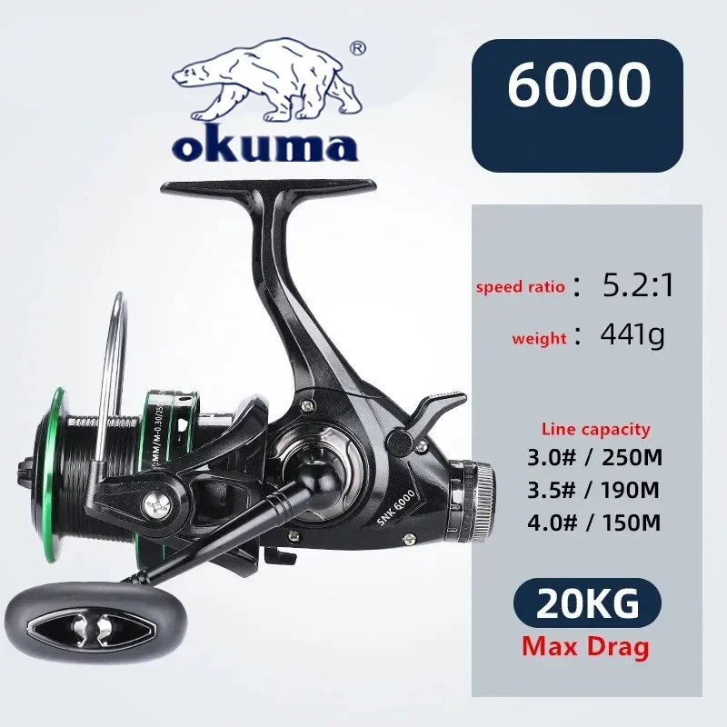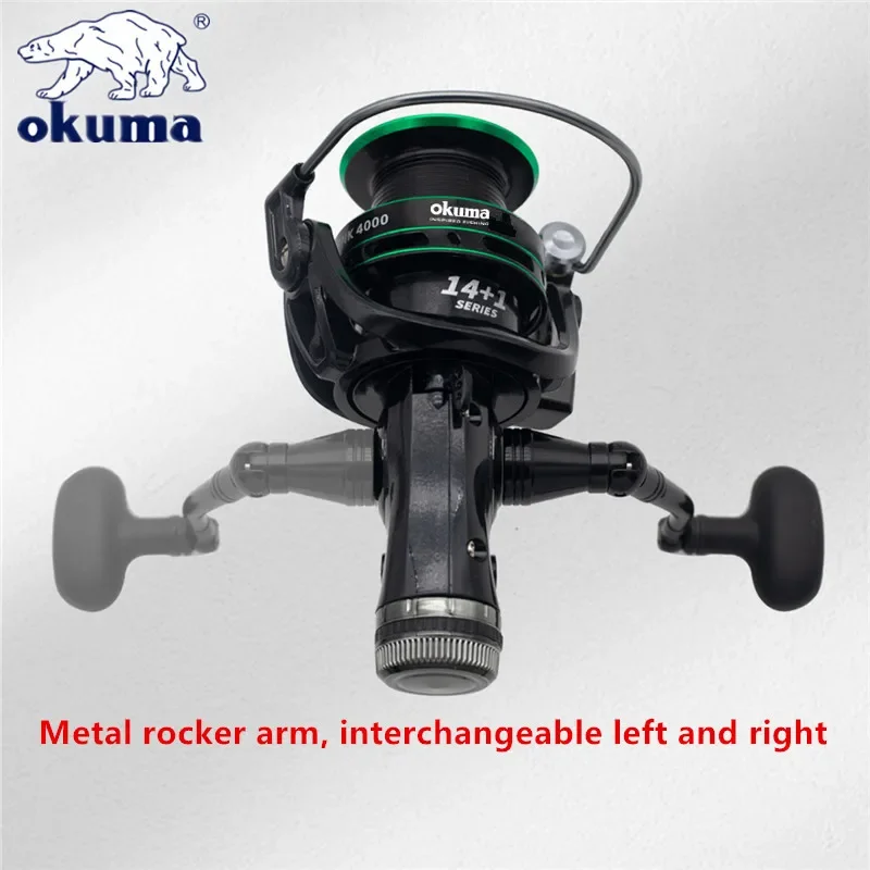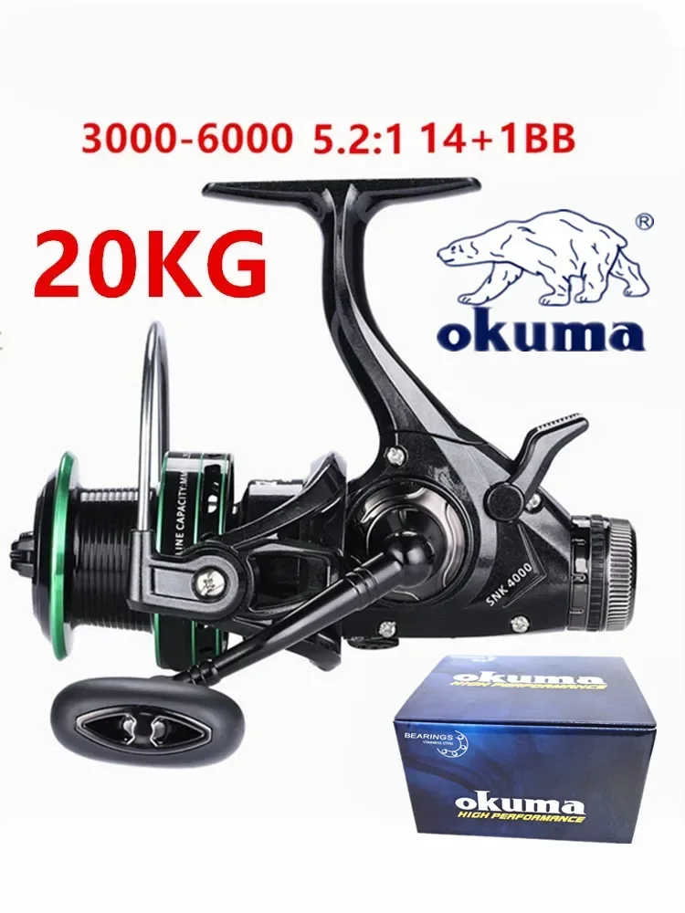OKUMA Dual Brake Fishing Reel 20Max Drag Speed Ratio 5.2:1/14+1BB All Metal Wire Cup Spinning Wheel 3000-6000