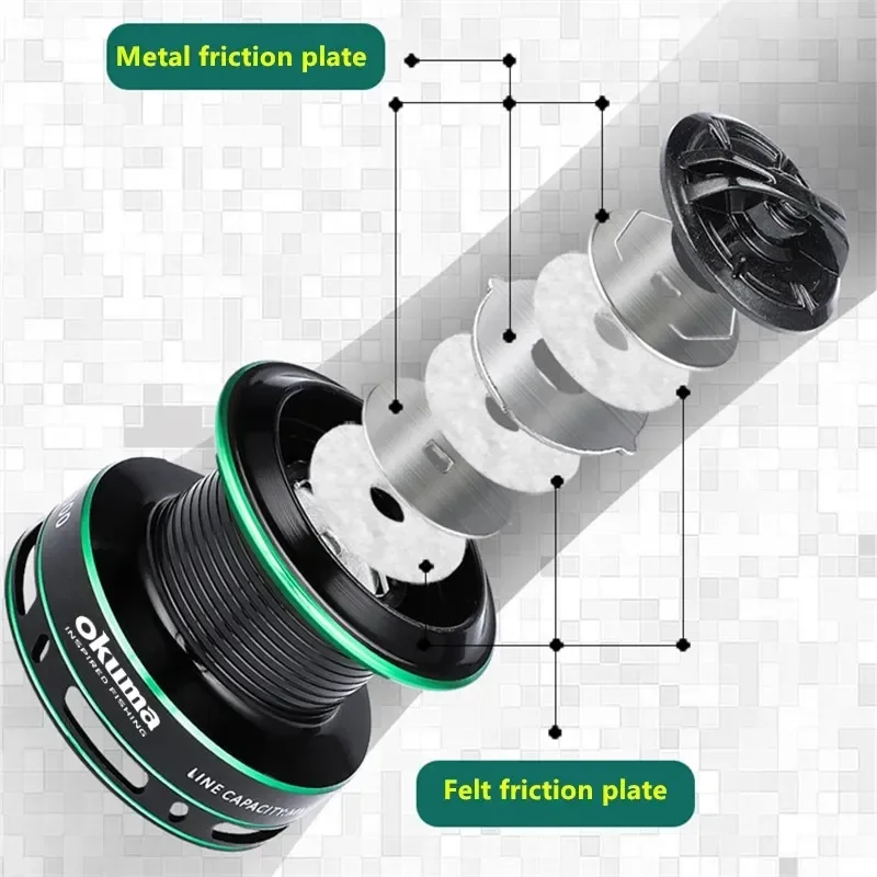 The OKUMA Dual Brake Fishing Reel combines a maximum drag speed of 20 and a gear ratio of 5.2:1 for smooth, powerful retrieval. With 14+1 ball bearings and an all-metal wire cup, this spinning wheel offers increased durability and precision for a variety of fishing techniques. Available in sizes 3000-6000.