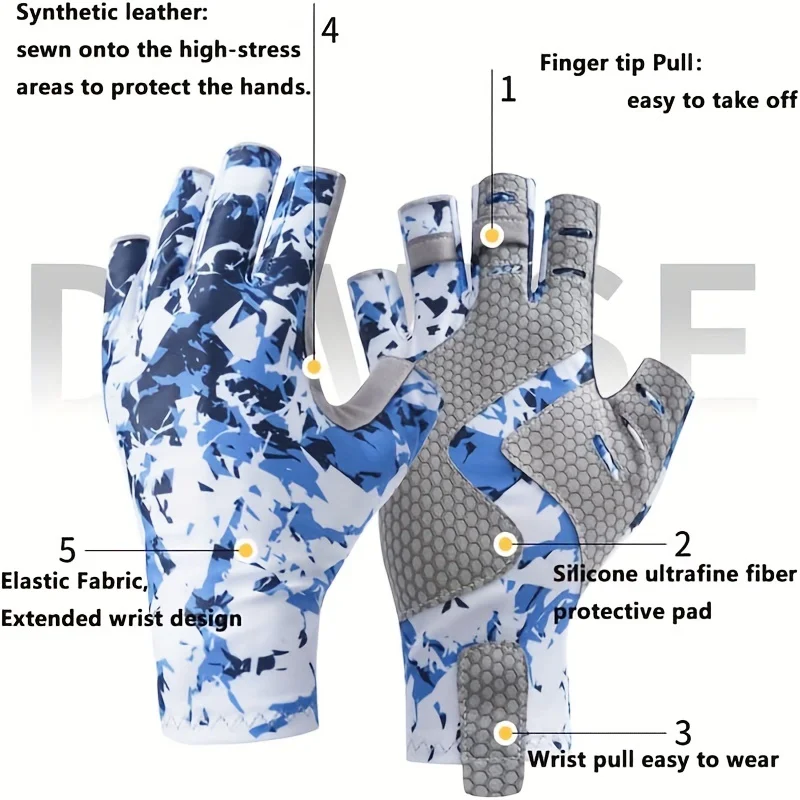 Sun Protection Fishing Fingerless Gloves, Uv Protection Silicone Anti-Slip Comfortable Breathable Fishing Gloves For Men Women