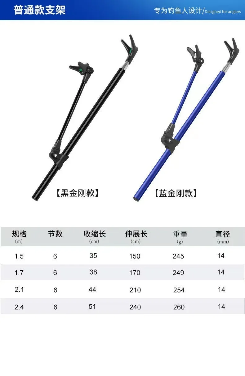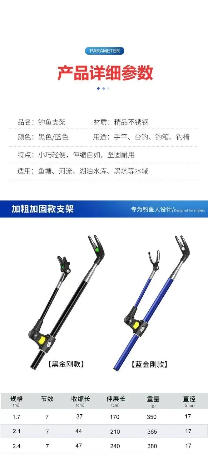 The Thickened Telescopic Fishing Rod Bracket is a must-have for any fishing trip. Made of durable stainless steel, this bracket makes it easy to secure your fishing rod and keep your hands free. Available in 1.7M, 2.1M, and 2.4M, it's the perfect dual-purpose accessory for any angler.