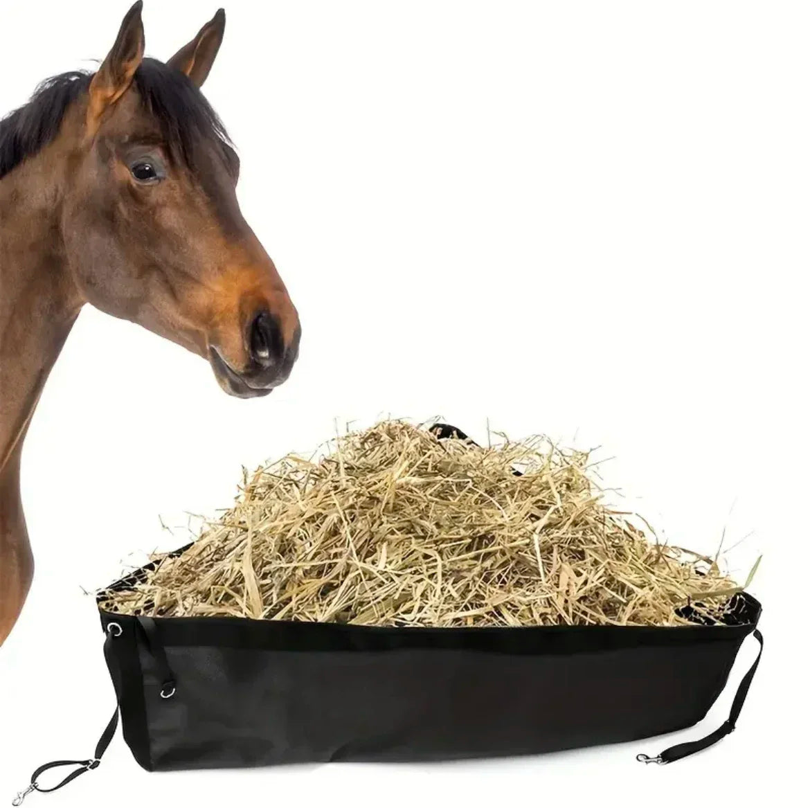 This triangular horse feeder features a breathable mesh bottom for optimal ventilation and hygiene, making it ideal for storing hay while feeding your livestock. Made from durable Oxford fabric, it ensures long-lasting use for all your horse's feeding needs.