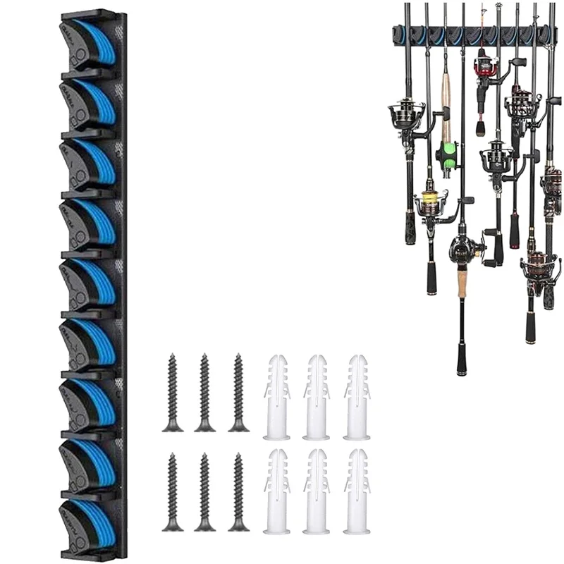 Vertical Rod Holder Wall Mounted Fishing Rod Rack Rod Stand Fishing Rod Organizer For Garage Room Holds Up To 9 Rods Or Combos
