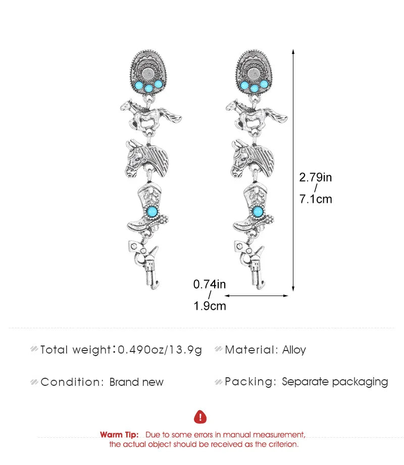 Vintage Bohemia Turquoise Cowboy Hat Boots Horse Earrings For Women